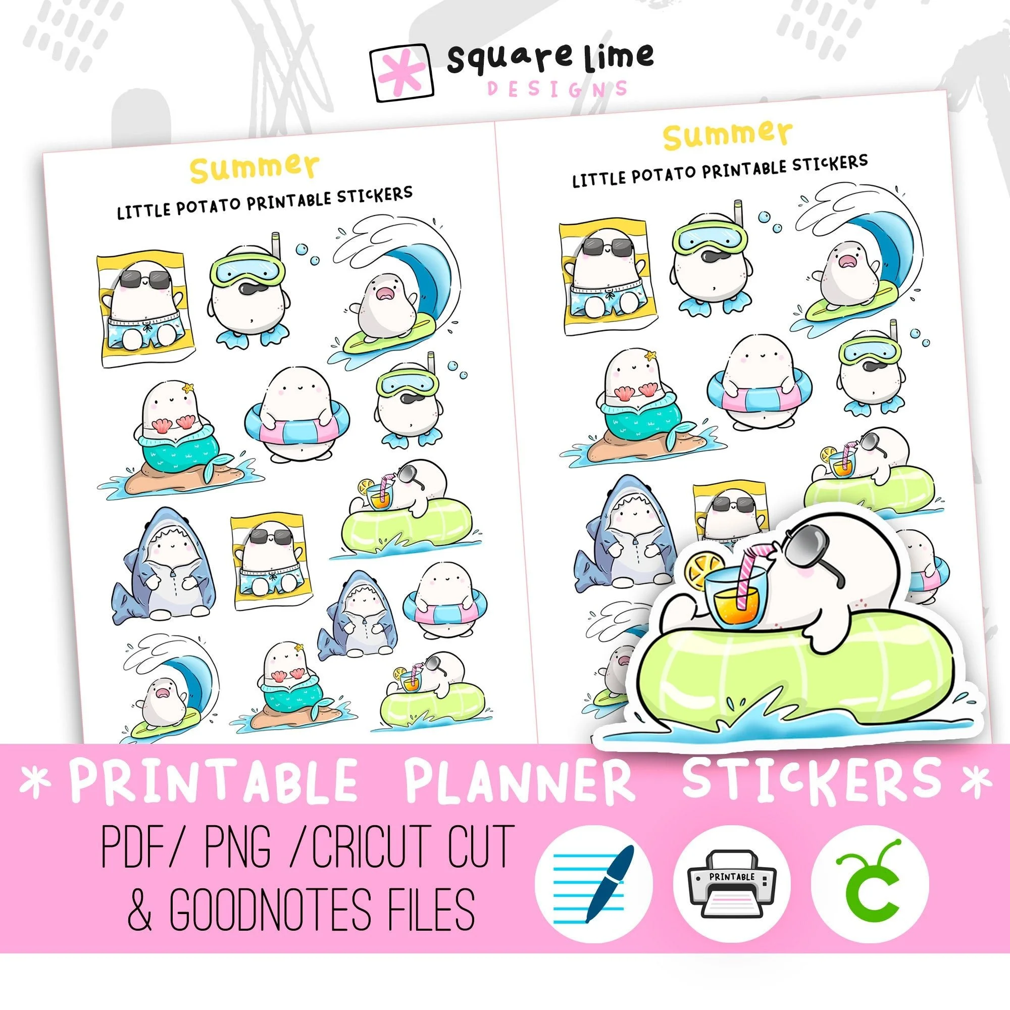 This is a Printable Summer Themed Sticker Sheet featuring Little Potato and his Summer adventures ⛱🍉